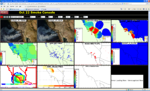 Smoke forecast are now being performed by diverse approaches, including chemical transport models that assimilate fire observations and forward trajectory models. In the resource table below the smoke forecast are available as quantitative datasets that can be browsed and analyzed. The additional links below point to forecasting presented through their respective, dedicated interfaces. Failed to load RSS feed from http://feeds.delicious.com/v2/rss/rhusar/071022SoCalSmoke+Forecast: <ul> <li> Error fetching URL: Could not resolve host: feeds.delicious.com </li> <li> There was a problem during the HTTP request: 0 Error </li> </ul>