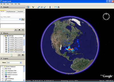 The images below show our initial attempts to the first stream, deliver the data through the Google Earth interface 2007-05-07 to 2007-05-17
