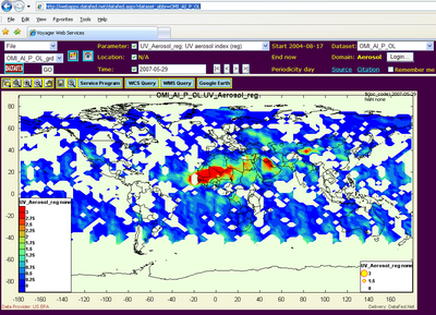 Figure 2. OMI Aerosol Index shown through DataFed Browser
