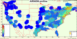 Description: AIRNOW is an EPA project to gather and distribute near-realtime data from several hundred continuous PM2.5 and ozone monitors.The AIRNOW system establishes the spatial and temporal patterns of the key pollutants PM2.5 and ozone. Parameters: pmfine, pm10, super |