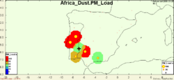 Description: Surface concentration of PM10 and dust aerosol based on monitoring network by INSTITUT DE CIENCIES DE LA TERRA JAUME ALMERA, Barcelona. Parameters: PM10, Dust |