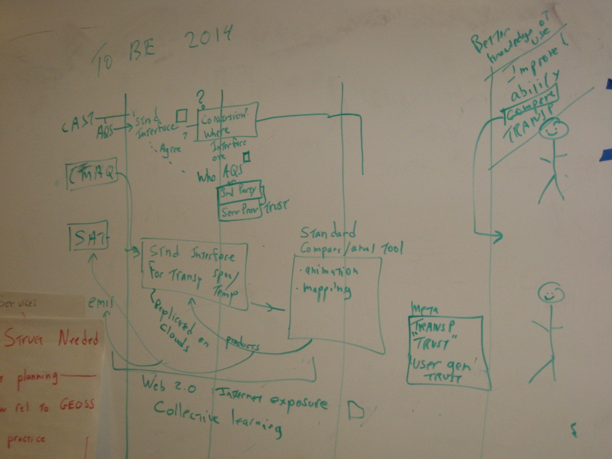 Broadly, we plan to use Wednesday to brief/update and identify important issues, then use Thursday to more systematically work through those issues to identify areas of general agreement and direction, and end with advice to ourselves (ESIP-AQ and the AQ Community of Practice), USGEO/GEO, EPA and NASA.