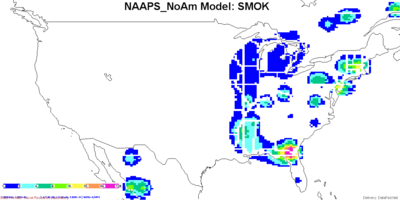 Model simulations and forecasts may also provide evidence for exceptional events. For example, the ability of regional and global-scale models for forecasting wind-blown dust events is continuously improving. This is evidenced by the good performance of the Naval Research Laboratory NAAPS global dust model. The simulation and forecasting of major smoke events is much more difficult due to the unpredictable geographic-time-height-dependence of the biomass smoke emissions. Hence, currently reliable and tested smoke forecast models do not exist. Nevertheless, some of the model simulations provide useful additional evidence for the cause of the high PM levels.