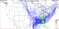 The above map shows the backtrajectories for the stations in a rectangular region centered on Washington D.C. It is evident that the sharply curved clockwise backtrajectories to Washington D.C. do not pass through the smoke emission region and would not qualify for an EE flag.