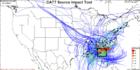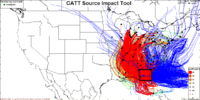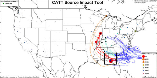 - The backtrajectories used in this analysis were calculated using the ATAD algorithm developed at NOAA ARL. These are derived from the observational wind field of radiosonde network and pre-computed at CIRA as part of the VIEWS operation activity. The ATAD algorithm provides only two-dimensional trajectories by estimating the "characteristic" transport within the boundary layer. Consequently, the ATAD trajectories can not be used to estimate transport that occur during 3-dimensional meteorological situations, e.g. strong subsidence or significant convective lifting above the boundary layer. In several intercomparison studies the ensemble ATAD trajectories were evaluated against the more elaborate HISPLIT trajectory algorithm (BRAVO study).