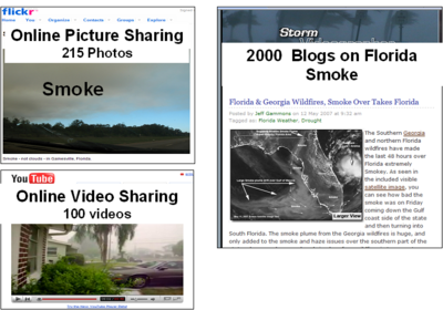 The general public provides additional qualitative observations of exceptional events shared through internet-accessible blog posts, photos through Flickr and videos through YouTube.