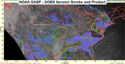 Description: GASP (GOES Aerosol/Smoke Product) which provides near real-time aerosol optical thickness using the GOES image. The unique feature of the GASP AOT data is the 1/2-hour resolution during the daytime, suitable for aerosol diurnal cycle studies. http://orbit Parameters: AOT |