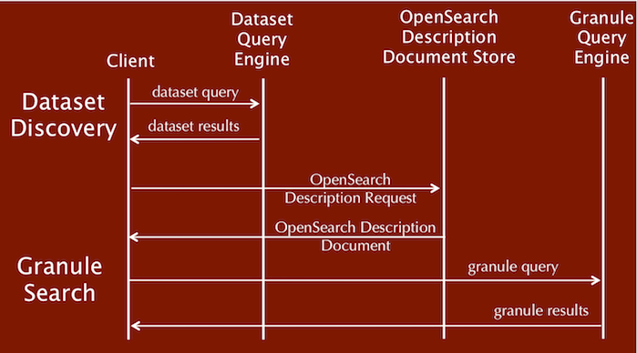- An OpenSearch Description Document for each dataset that describes the granule-level search template for that dataset