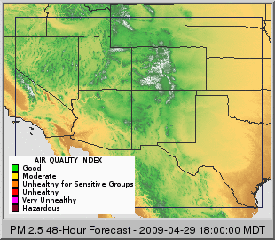 One recent NASA funded project is the Public Health in Remote Sensing Project (PHAiRS) in which, in collaboration with researchers at the University of Arizona and George Mason University, a services oriented architecture for the delivery of near-real-time dust forecast data to public health decision makers. The following two animations illustrate the types of dust forecast model outputs generated as a result of the PHAiRS project.