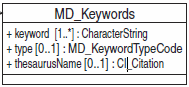 | 4 | mri:keywordClass | 0..1 | mri:MD_KeywordClass | ||