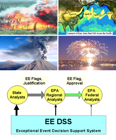 The objective of this project is to develop a decision-support system (DSS) for the implementation of the new Exceptional Event (EE) Rule, which permits States to flag air quality (AQ) data caused by exceptional events, such as forest fires and dust storms. The Rule requires States to provide quantitative evidence for exceptional source contributions. Based on the reported evidence, EPA decides if the EE flag is justified.
