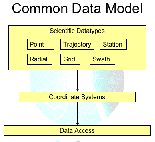 In this project, polymorphism means Web services that (1) maintain sophisticated awareness of and sensitivity to the types of input information they receive and (2) take differing actions, dependent upon this data-type discernment. Such flexibility requires sufficient descriptive capacity to characterize data inputs and outputs at a high (i.e., semantic rather than syntactic) level. Such abstract data typing will be achieved in this project by relying on and augmenting the Common Data Model, sketched as shown in Figure 1a, under development in Unidata.