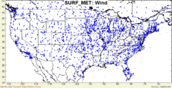 Description: SURF_MET_WIND is a wind dataset gathered by gathered by WMO. Currently, there are about 10,000+ SURF_MET stations worldwide. Data delivered through Plymoth State Weather Center. Parameters: Wind direction, Wind Speed |
