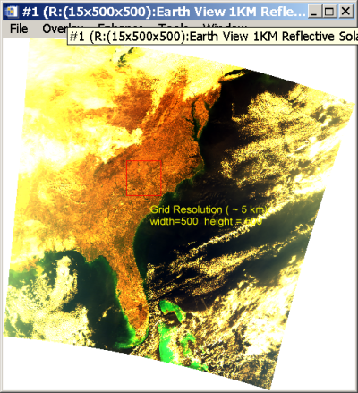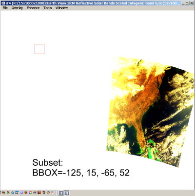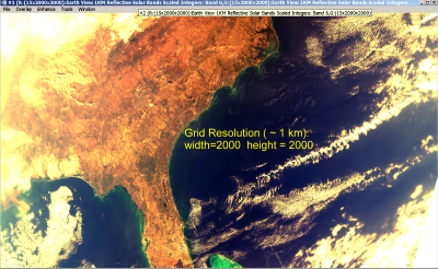 As requested, the WCS query returned a pointer URL to an HDF-EOS file. The images below are renderings of the various test queries using the IDL-based ENVI data visualisation/processing softare.