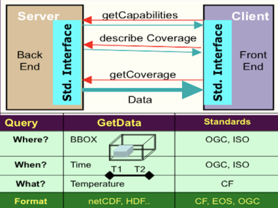 The server needs to publish and advertise its data holdings and capabilities. The client needs to express its data needs in the context of the server capabilities. The server has to respond to the user's query bag extracting and preparing the payload precisely as requested. The client then has to understand the content of the data package. In the past, these requirements for interoperability between data providers and users were accomplished by human-catered communication. Available datasets were published in catalogs and data structures were described in 'readme' files. The clients then 'downloaded' the desired files, and with the use of 'readme' files prepared a hand-crafted importing procedure for the data into the client's data processing tools. Frequently, the processing is performed using dedicated programs written in procedural languages (Fortran, C, Java, etc.)