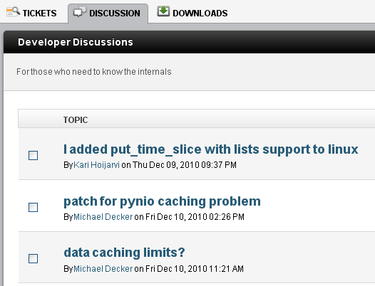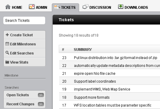Tickets: Every project needs issue tracking. Whether you are a developer, who needs to communicate with other developers, or just a casual user who has a feature request or a defect to report, this is the place to go. Explore the open and closed issues.